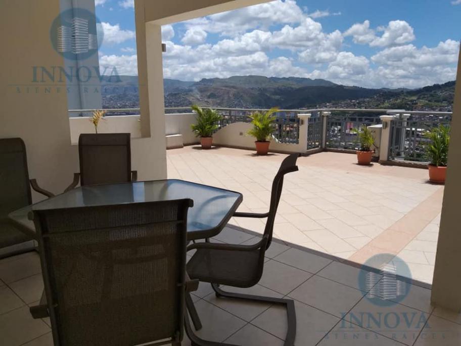 Departamento en Renta | Venta en Lomas del Guijarro, Tegucigalpa Torre Horizontal INFORMACIÓN BÁSICA Espacios : 3 Recámaras : 3 Baños : 2 Medios baños : 1 Cocheras : 2 Antigüedad : 7 Años SUPERFICIES Superficies: 235 m² Superficie Total: 235 m² DESCRIPCIÓN HorIzonte Guijarro m2 235 m2 115 Metros de Terraza Sala Principal Sala Familiar Comedor Cocina isla central,amplia muebles de granito Máster Bedroom con Jacuzzi 2a habitación con su baño 3a habitación baño adjunto Área de Lavanderia Cuarto de empleada Dos alacenas Dos ascensores Dos estacionamientos Terraza privada 115 mts $2,700 mensual Cuota mantenimiento Lps 2,380 (Vigilancia,agua,aseo areas comunes) Precio venta $390.000 Condominio de lujo en venta, zona exclusiva, seguridad las 24 horas del día, terraza con vista hacia El Picacho. INNOVA BIENES RAICES Es una Empresa que se dedica a la administración profesional, alquiler y venta de bienes inmuebles. Garantizando su profesionalismo y excelencia en el servicio al cliente. Brindamos asesoramiento a propietarios de inmuebles, tanto para alquiler como para venta, y nos encargamos de promover su propiedad a través de nuestros servicios de publicación y mercadeo en distintos medios. Contamos con nuestro equipo de abogados que ponemos a su servicio para asesorarlo en todas las cuestiones legales y firmas de contratos.