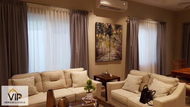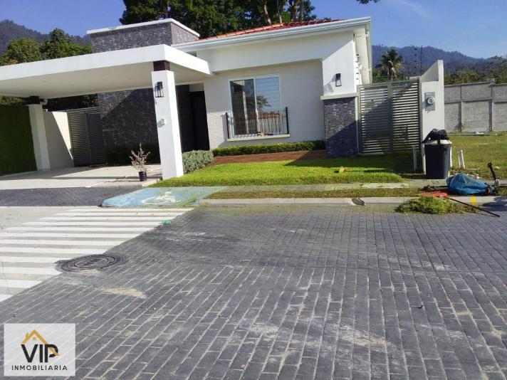 Bella casa nueva de un nivel en venta y renta en San Pedro Sula Honduras - Ciudad Maya. La casa cuenta con 3 habitaciones, 3 baños, sala, comedor, cocina con su mueble, área de lavandería y garaje para 2 vehículos. Construida con materiales de calidad, madera de color, granito, detalles arquitectónicos en techo. La Residencial es segura y exclusiva, cuenta con Casa Club, piscina, cancha de tenis, estacionamiento y amplias calles internas. Llamenos para coordinar una cita. Le apoyamos con el proceso de financiamiento. En el caso de la renta se puede rentar con o sin muebles.