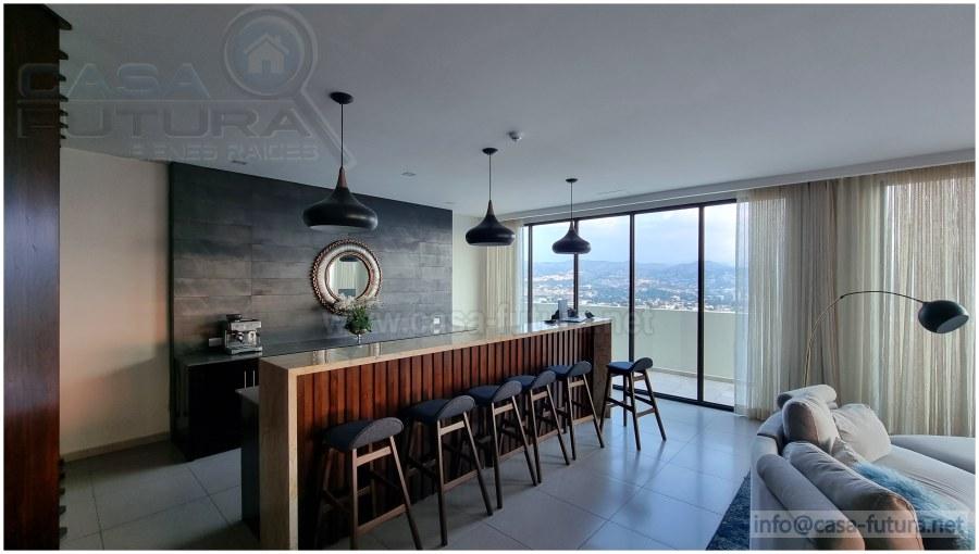 Esta Comunidad Residencial viene a deslumbrarnos con un alto nivel de acabados, diseño, amplias áreas comunes y lo mejor de todo en una ubicación inmejorable, céntrica, accesible y de gran plusvalía. Cuenta con 5 niveles de estacionamiento con mas de 300 espacios para vehículos, 13 niveles de residencias y 1.5 niveles de lindas áreas comunes con espectaculares vistas a la ciudad Elija vivir en este ambiente de total seguridad las 24 horas del día los 7 días de la semana CUENTA CON LAS SIGUIENTES AREAS SOCIALES: -Piscina de adultos y niños -Gimnasio -Sala de cine -Sala de juegos -Bar de cafe -Area lounge -Salon de eventos -Juegos de niños -Area de barbacoa -Area de fogata -Area de mascotas CUENTA CON ESTAS COMODIDADES Y ACABADOS: -Todos los apartamentos tienen baño de visitas -Baño con vidrio templado en cuarto principal -Acabados modernos -Espacios diseñados por diseñadores especializados en interiores -Balcones amplios con vistas panoramicas -Cocinas ergonomicas con modernos acabados -Puertas con vidrio templado -3 ascensores para pasajeros -1 ascensor de carga -Planta electrica DESCRIPCION APARTAMENTO • Area de construccion aproximada: 67 m2 • Habitaciones: 1 • Baño • Sala - comedor • Cocina con muebles • Closet • Aire acondicionado • Estacionamiento • Espejos en los baños • Top de cuarzo en baños y cocina. TOTALMENTE AMUEBLADO NOTA: Cuota de mantenimiento incluida en el precio. NOTA: Cable / internet incluido en el precio