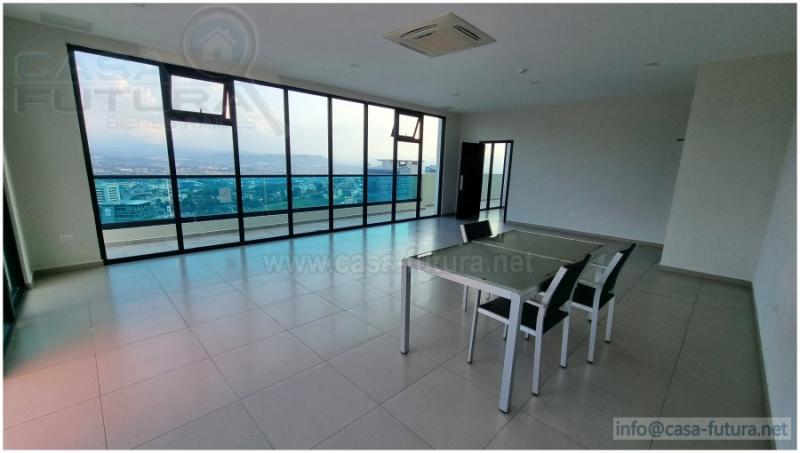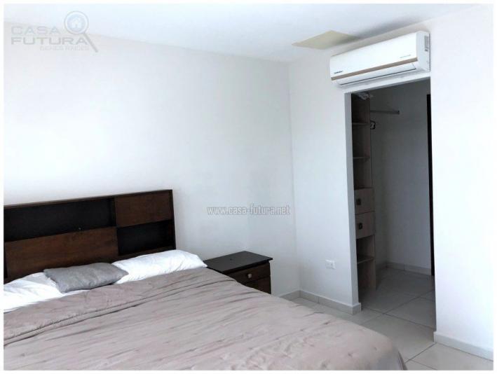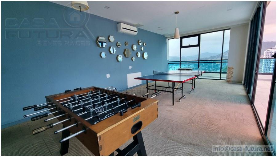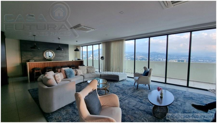 Esta comunidad residencial viene a deslumbrarnos con un alto nivel de acabados, diseño, amplias áreas comunes y lo mejor de todo en una ubicación inmejorable, céntrica, accesible y de gran plusvalía. Cuenta con 5 niveles de estacionamiento con mas de 300 espacios para vehículos, 13 niveles de residencias y 1.5 niveles de lindas áreas comunes con espectaculares vistas a la ciudad. Elija vivir en este ambiente de total seguridad las 24 horas del día los 7 días de la semana Completamente amueblado, sala, comedor, camas, mesas de noche, cocina equipada, lavadora secadora tipo torre, a/c alta eficiencia en los 3 dormitorios, cortinas tipo roller en ventanas. CUENTA CON LAS SIGUIENTES AREAS SOCIALES: - Piscina de adultos y niños - Gimnasio - Sala de cine - Sala de juegos - Bar de cafe - Area lounge -Salon de eventos - Juegos de niños - Area de barbacoa - Area de fogata - Area de mascotas. CUENTA CON ESTAS COMODIDADES Y ACABADOS: - Todos los apartamentos tienen baño de visitas - Baño con vidrio templado en cuarto principal - Acabados modernos - Espacios diseñados por diseñadores especializados en interiores - Balcones amplios con vistas panoramicas - Cocinas ergonomicas con modernos acabados - Puertas con vidrio templado - 3 ascensores para pasajeros - 1 ascensor de carga - Planta electrica. DESCRIPCION APARTAMENTO DE 3 HABITACIONES (MODELO 3) Area de construccion: 125.4 m2, Habitaciones: 3, Baños: 3.5, Sala - Comedor, Cocina con muebles, Closets, Aires acondicionados: 3, Estacionamientos: 2, Espejos en los baños, Top de cuarzo en baños y cocina. TOTALMENTE AMUEBLADO - NOTA: Cuota de mantenimiento incluida en el precio