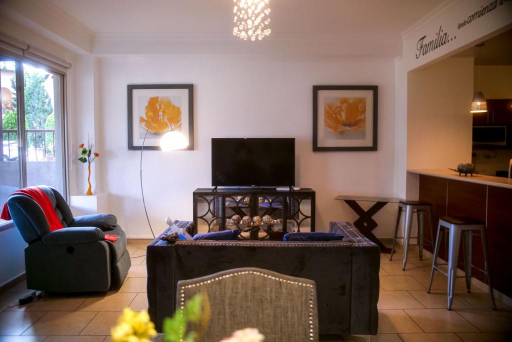 1 habitación, 1.5 baños, sala, comedor, cocina, área de lavandería, 1 estacionamiento.