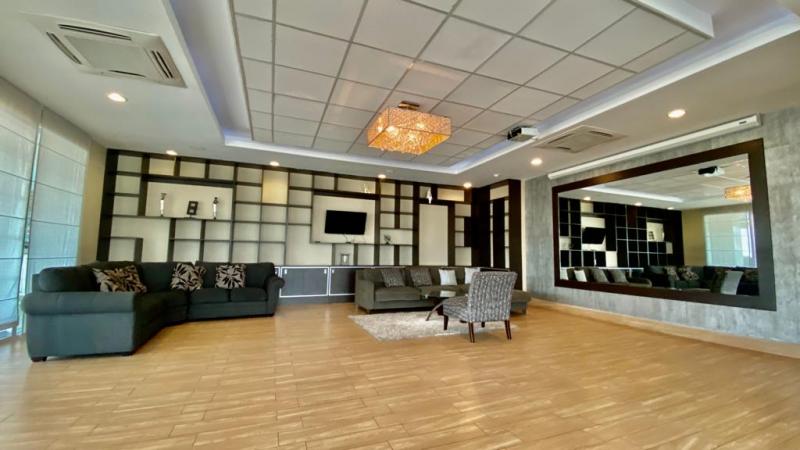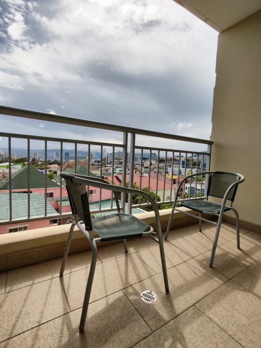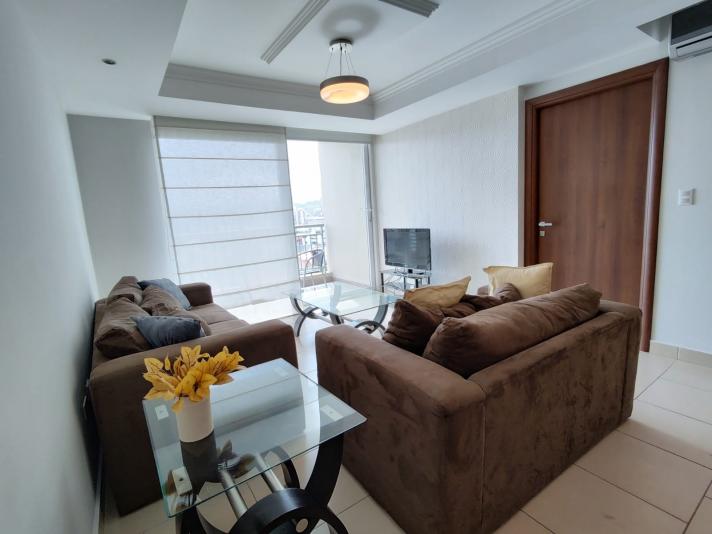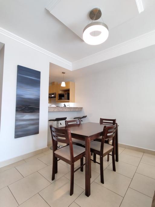 1 habitación,1 baño, sala, comedor, cocina, área de lavandería, balcón,1 estacionamiento.