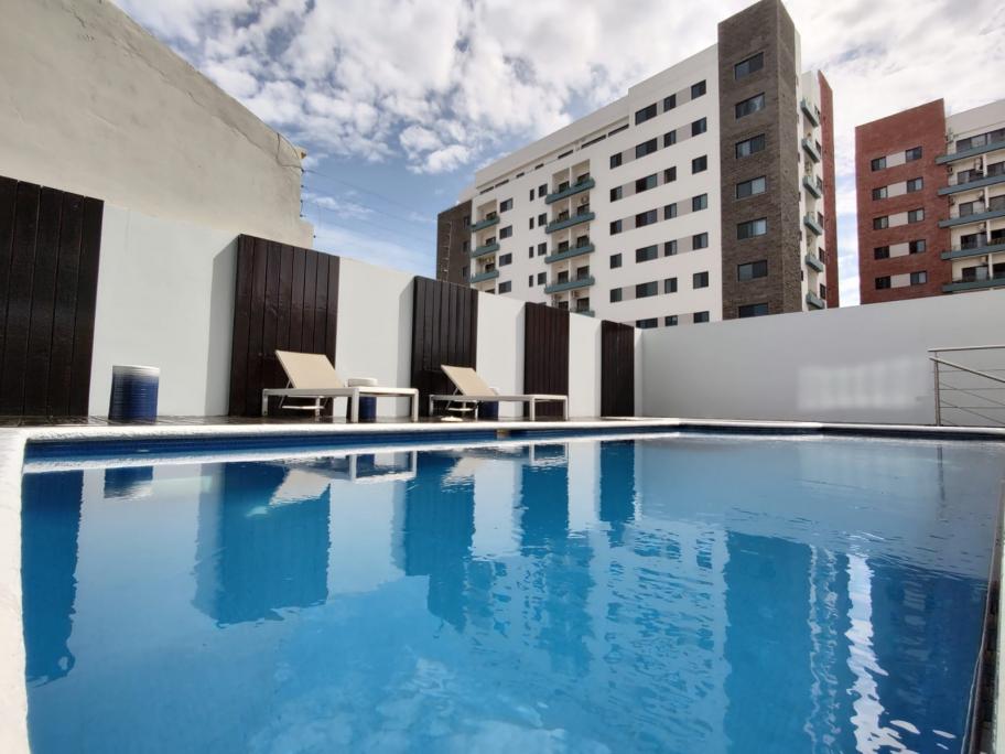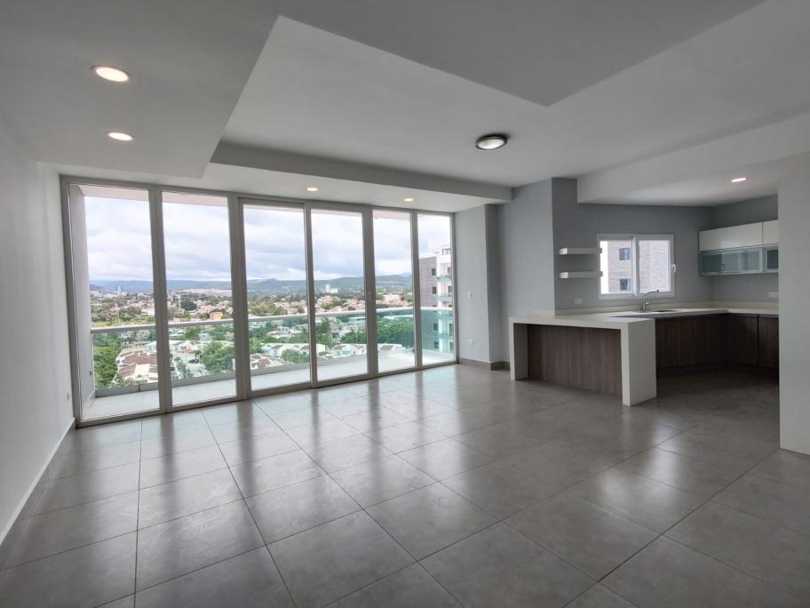 2 habitaciones, 3 baños, sala, comedor, cocina, área de lavandería, balcón, 2 estacionamientos.
