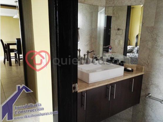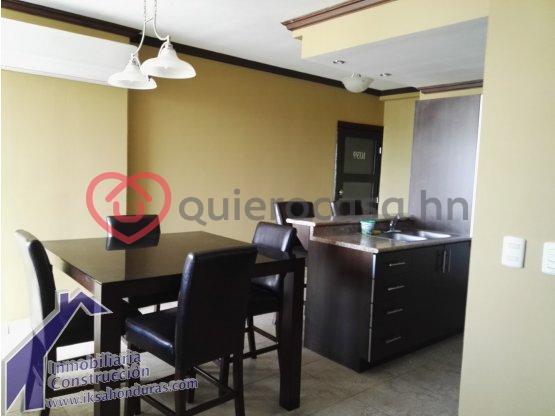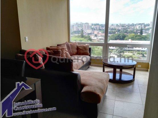 Apartamento completamente amueblado cuenta con sala comedor cocina equipada área de lavandería estudio terraza cuarto principal con walki-in closet y baño cuarto secundario con baño compartido para visitas.