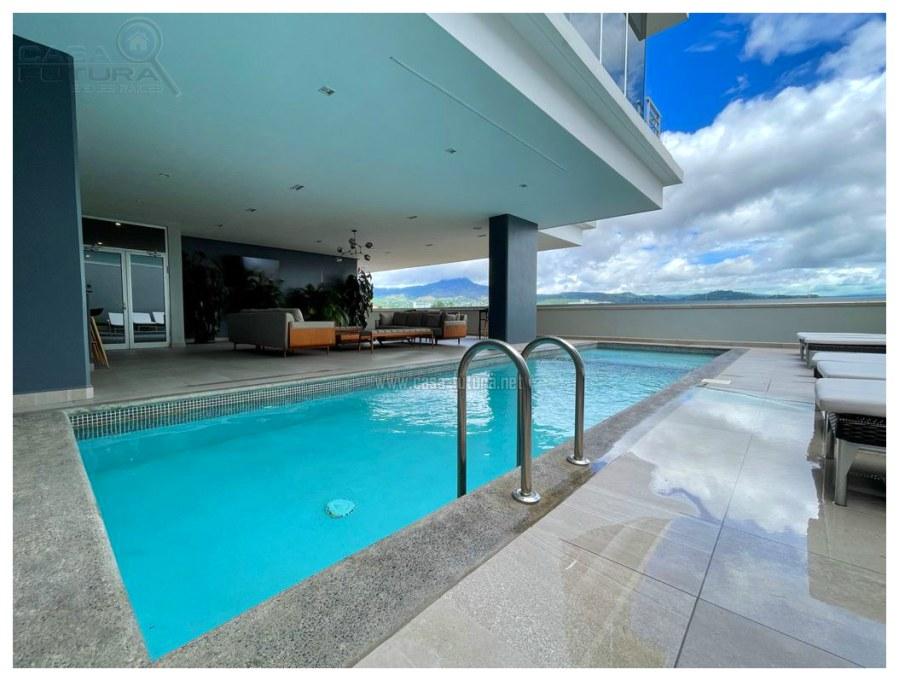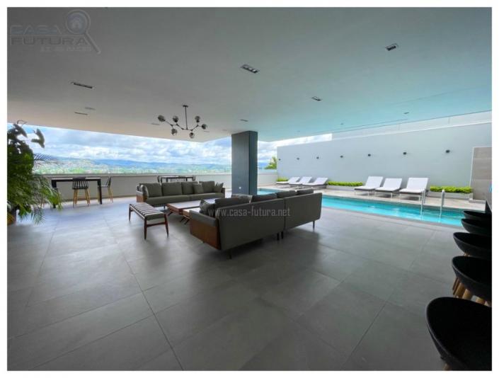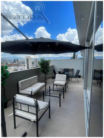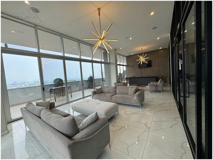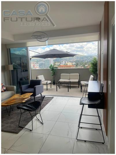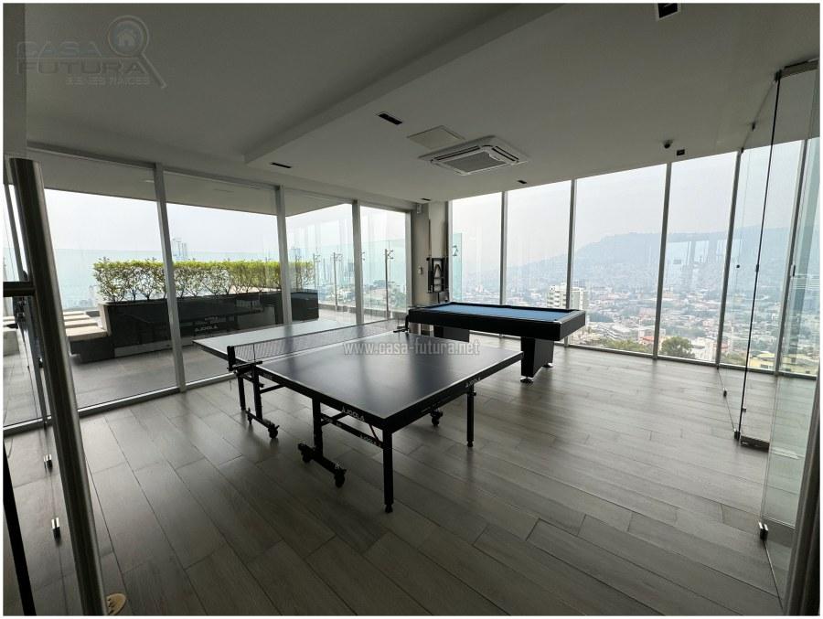 Torre totalmente moderna que se encuentra muy bien ubicada en Lomas del Guijarro y tiene una vista espectacular a toda la ciudad de Tegucigalpa El apartamento se renta AMUEBLADO DESCRIPCION • Area de construcción aproximada de apartamento: 107 m2 (incluida terraza) • Area de terraza aproximada: 34 m2 • Habitaciones: 2 • Baños completos: 2 • Baño de visitas: 1 • Amplia sala- comedor • Cocina • Aire acondicionado • Area de lavanderia privada • Estacionamientos: 2 • Tiene electrodomesticos en cocina EL EDIFICIO CUENTA CON: • Niveles: 14 • Sótanos de estacionamientos: 5 • Lobby • Piscina • Gym • Area de barbacoa • Salas lounge • Rooftop con espectacular vista a toda la ciudad de Tegucigalpa • Salones multiusos • Area de juego para niños • Sala de conferencias • Oficinas de trabajo compartidas NOTA: Algunos muebles, acabados y accesorios pueden variar