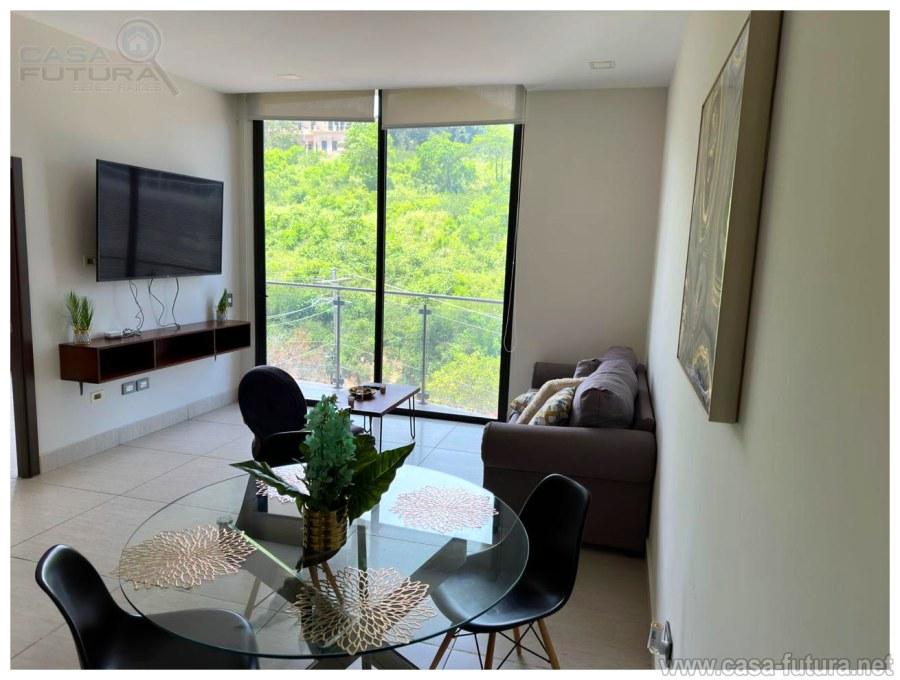 Espectacular vista a la ciudad de Tegucigalpa Apartamento centrico, moderno en zona exclusiva de la ciudad con seguridad 24 horas al dia los 7 dias de la semana con una linda area social DESCRIPCION: • Area de construccion aproximada: 62 m2 • Habitaciones: 1 • Baños completos: 1 • Baño de visitas: 1 • Sala - comedor • Cocina con muebles e Isla con top de cuarzo • Armario de Lavanderia • Balcon amplio con espectacular vista • Ventanales de Piso a Techo • Vista Panoramica desde sala, comedor cocina y dormitorios! • Estacionamientos: 1 • Dormitorio de empleada con baño en el mismo piso: 1 APARTAMENTO CUENTA CON: • Muebles • Aire acondicionado • Cortinas • Espejos • Lavadora y Secadora • Linea Blanca de Acero Inoxidable • Utensilios, Platos, Vasos, Ollas • Cama • Juego de Sala • TV grande • Comedor AREA SOCIAL CUENTA CON: • Salon de Eventos • Amplia Terraza • Pista de Correr • Piscina • Area de Barbacoas • Sauna • Gimnasio • Sala de Cine • Sala de Conferencias