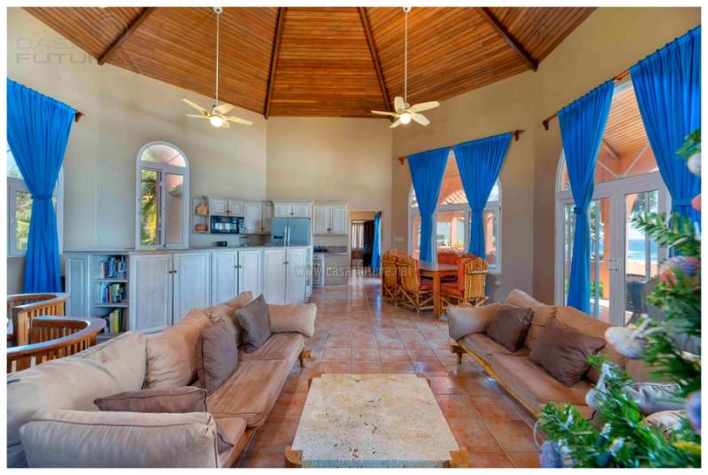 DESCRIPCION • Area aproximada de construcción: 4000 pie cuadrado que equivale a 371.60 m2 • Area aproximada de terreno: 0.35 acres que equivale a 2026.92 v2 ó 1416.39 m2 • Habitaciones: 3 • Baños: 2 • Niveles: 2 • Estacionamiento • Planta eléctrica • La casa viene sin muebles • Ventanas grandes • Terrazas amplias • Techos de teja • Ventilación e iluminación natural en todos los ambientes • Tiene mas de 85 pies de frente de playa.