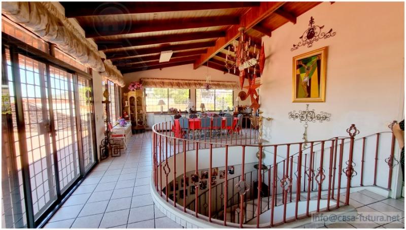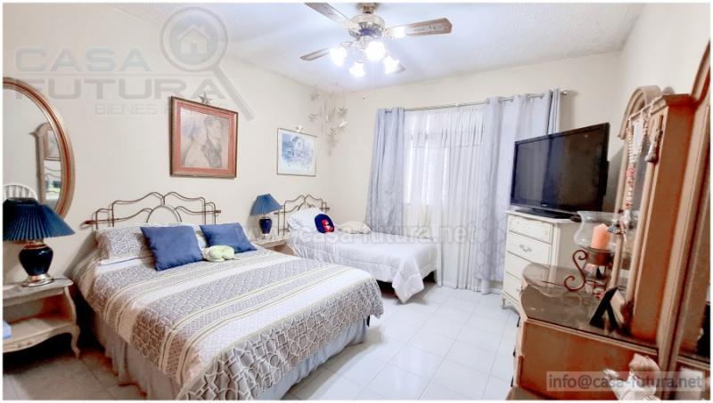 Amplia casa de esquina con • Area de Terreno de 1120 varas2 • Area de construccion 893 m2, • 5 Habitaciones • 5.5 Baños • 1 Estudio u Oficina en 1r Piso • 4 Salas • Amplio Salon de conferencias en 2do Nivel • Area Social con Bar • 1 Cuartos de Empleada con su baño • Amplio Comedor frontales y laterales • Amplios Corredores • Amplias Terrazas y Porch • Azotea Enladrillada • Area Social para Fiestas • Patio Trasero • Area de Barbacoas • Walk-In-Closet Ppal • Cocina amueblada • Garaje para 4 carros • Area de Lavanderia • Tendedero • Bodega • Jardin Frontal ACABADOS • Piso de Granito y Ceramica • Cielo Falso de Viga Vista con Machimbre barnizado • Mueble de Cocina con Top solido y muebles estilo americano • Muebles de Closet • Ventanas de Celosia y Vidrio Fijo • Lavamanos de Pedestal • Cielo Falso de Machimbre y Panelit • Paredes de Ladrillo Rafon Repelladas , Pulidas y Pintadas • Diversas plantas en jardines y todos lo corredores • Espejos en Paredes • Escalinata Curva con Barandales de Hierro • Patio Engramado • ACCESORIOS • Conexiones CATV y Tel • Cisterna • Tanque ELevado • Bomba y Tanque de Presion • Balcones de Seguridad en todas las puertas y Ventanas • Intercomunicador Video Portero • Ventiladores de Techo • 3 Lineas Telefonicas • Fuente Decorativa en Patio • UBICACION ESTRATEGICA PARA: • Anexo de Hospital • Clinicas Especializadas • Centro de Terapias • Oficinas Privadas • Oficinas de Gobierno • Aparta-Hotel • Bed and Breakfast • Restaurante • Escuela o Kinder • Anexo de Universidad • Centro Cultural • Hogar para cuidado de Adultos Mayores