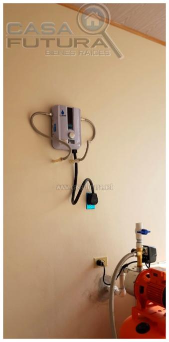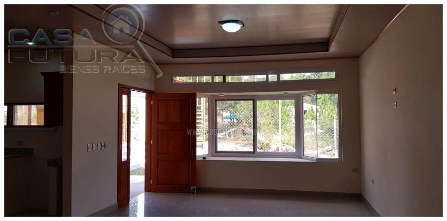DESCRIPCON • Area de terreno aproximada: 615 v2 • Área de construcción aproximada: 165 m2 • Habitaciones: 3 • Baños completos: 2 • Sala – comedor • Cocina con top de granito y mueble de madera de cedro real • Alacena amplia • Walking closet en habitación principal • Lavanderia techada • Agua caliente en toda la casa • Estacionamiento: 3 – 4 vehiculos • Cisterna • Agua potable • Vigilancia 24/7