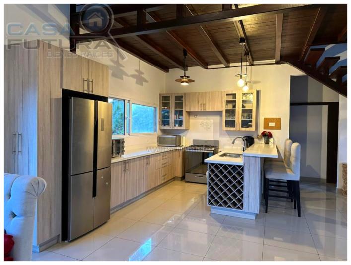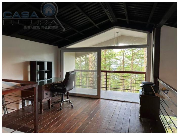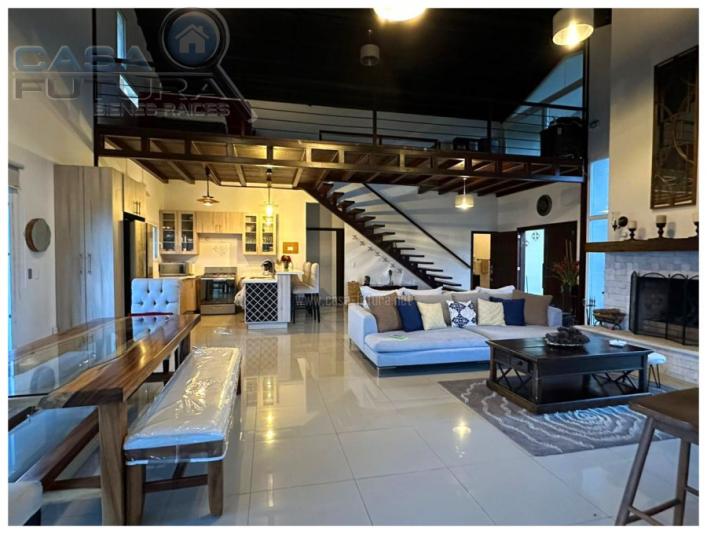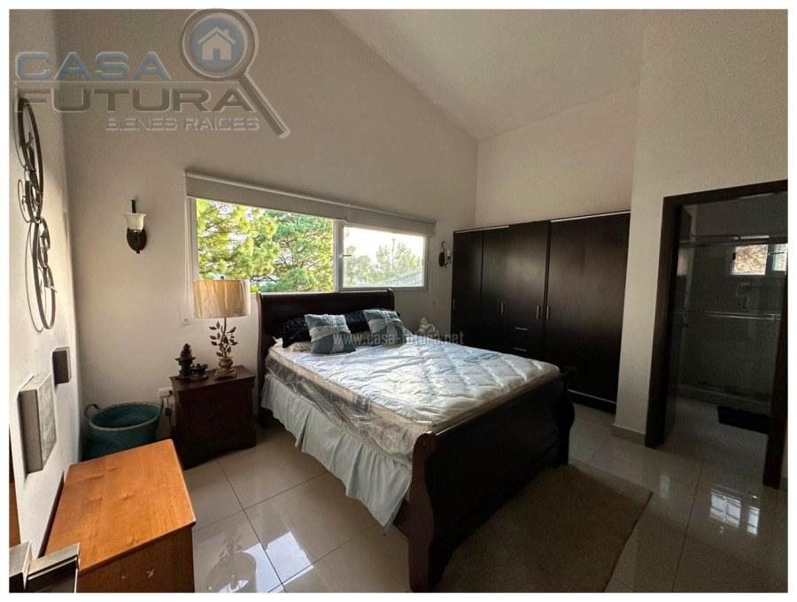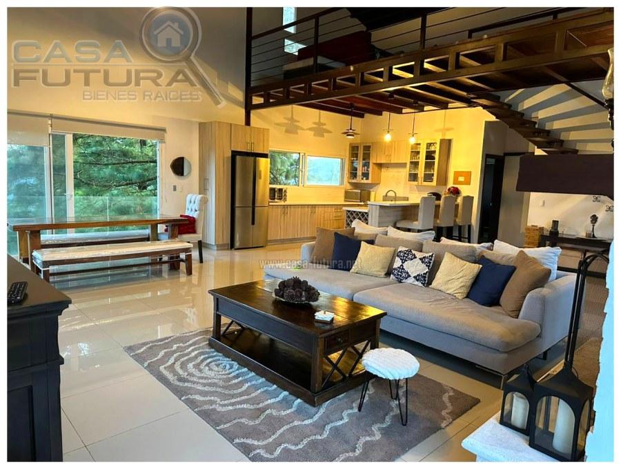 Viva con la agradable paz que solo se puede experimentar en una zona campestre con el clima perfecto y el silencio que le traera la paz y descanso que todos añoramos por dentro. Una Belleza de casa. Moderna y a la vez retirada del bullicio y afan de la ciudad. DESCRIPCION • Area de terreno: 2,327 v2 • Area de construccion: 352 m2 • Habitaciones: 3 (la tercer habitación esta ubicada en el mezzanine la cual funciona actualmente como habitación pero también podría ser una linda área de estudio) • Baños completos: 3 • Baño de visitas: 1 • Closet en las habitaciones • Area de lavanderia privada • Estacionamientos: 6 • Cisterna de agua con capacidad de 13 m3 (metros cúbicos) • Tanque de agua de abastecimiento • Tiene área privada con dormitorio con baño completo y area de lavanderia para personal de servicio o para personal de seguridad • Biodigestor NOTA: El precio ofertado es SIN muebles