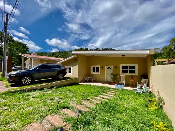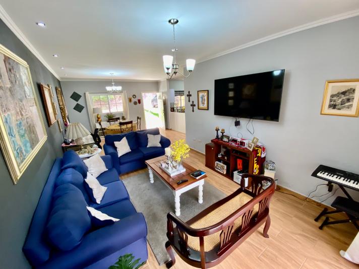 Casa de 1008 v2 de terreno con 122 m2 de construcción, 3 dormitorios con 2 baños, sala, comedor, cocina, área de lavandería, terraza trasera techada, área de jardín amplio, circuito cerrado. Cuarto principal cuenta con walk in closet y baño privado ademas de salida directa a la terraza. 2 parqueos con jardín frontal