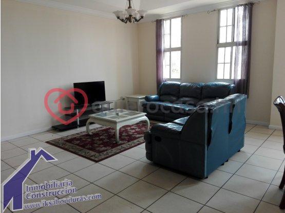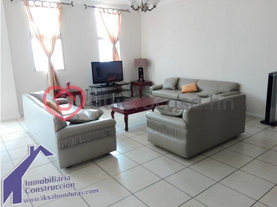 Apartamento amueblado con 3 habitacones principal con walki-in closet y baño 2 cuartos adicionales con su closet y baño compartido sala comedor cocina area de lavanderia y planchadomedio baño para visitas estacionamiento para 2 vehiculos.