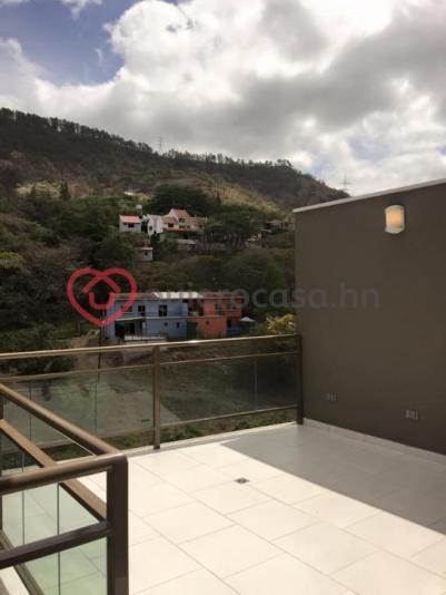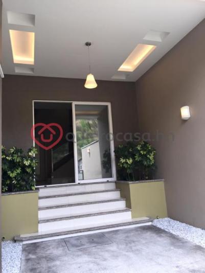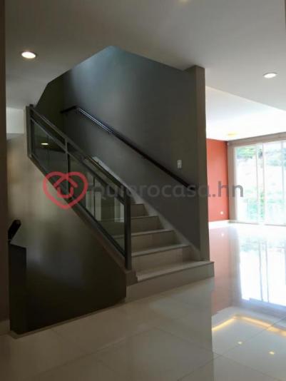 Moderna casa con espacios abiertos y finos acabados. Esta casa contiene los siguientes espacios: primer piso: espacio abierto con sala, comedor, cocina y gradas a segundo nivel con vidrio templado, medio baño para visitas, terraza exterior con vista áreas verdes , jardín. Segundo piso: dos habitaciones con aires acondicionados y sus respectivo walk-in closet y aire acondicionado, sistema de agua caliente en toda la casa. Planta baja :una habitación mas completa , área de lavandería, área de bodega, cuarto de empleada con baño, y jardín en nivel inferior. Casa completamente nueva acabados de primera ubicada a apenas cinco minutos de tegucigalpa carretera a santa lucía, a cien metros de la residencia del ex presidente lobo, complejo habitacional exclusivo en un ambiente ecológico.