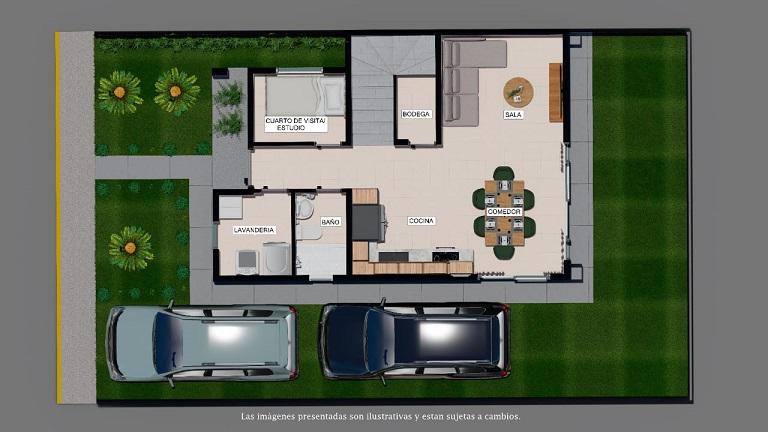 CASAS desde 144.40 Mt2 y 207 Vr2 consta de:1era Planta, estacionamiento con huellas, lavanderia interna, bodega,habitación de huéspedes o estudio, baño, Sala-Comedor, Cocina, patio Segunda planta: 3 habitaciones, el principal con wac y bano, y closets en las dos habitaciones secundarias y 1 bano copartido.