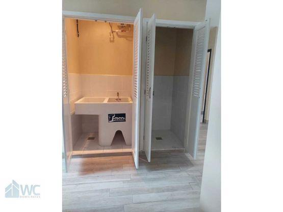 2 habitaciones, 2 baños, sala, comedor, cocina, área de lavandería, estacionamiento.