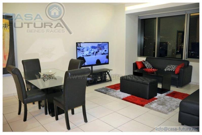Descripción Apartamento de esquina con bastante iluminacion Vista preciosa al Blvd Morazan Full Amueblado DISTRIBUCION: • Tamaño: • 2 habitaciones • 2 Baños • Sala-Comedor • Cocina con muebles • Area de lavanderia • Balcon • 2 Estacionamientos Licuadora, vasos , compas, lavadora, secadora, plancha , planchador, Juego de Sala, Camas, Mesas de noche, Estufa, Refrigeradora, Hornito, ACABADOS: • Pisos de porcelanato • Cocina con top de granito • Cielos falsos terminados • Baños enchapados con ceramica • Extractor de aire en baños • Ventanales de vidrio flotado y aluminio AREA SOCIAL INCLUYE: • Piscina • Gimnasio • Pista de correr • Sala para eventos • Area de juegos SEGURIDAD: • Diseño antisismico • Sistema independiente de agua contra incendios presurizado • Mangueras y posibilidad de conectar rociadoras • Puertas contra incendios en cubo de gradas • Sistema de pararrayos • Camaras de seguridad con monitoreo y grabacion NOTA 2: Las fotos pueden variar de un apartamento a otro NOTA 3: Cuota de mantenimiento incluida en el precio