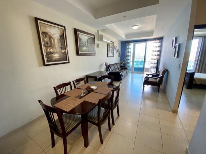 Solo amueblado apartamento de 2 habitaciones y 1 baño, 95 m2. Incluye mantenimiento y 2 estacionamientos, cuenta con aire acondicionado en todo el apartamento