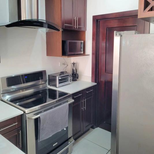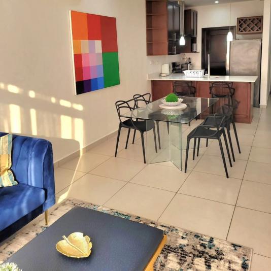 Se aquila Apartamento Full Amueblado En Condominios Capri. Medidas: 81.70 Mts² de construccion $1,300 de Alquiler Consta de: Sala, Comedor, Cocina con sus muebles, Desayunador, Alacena, Balcón, 2 Habitaciones con closet ( habitación principal con walk-in closet), 2 Baños completos, Área de lavandería interna Estacionamiento 2 vehículos, Circuito cerrado, Seguridad 24/7. AMENIDADES Áreas social y bbq, Piscina.