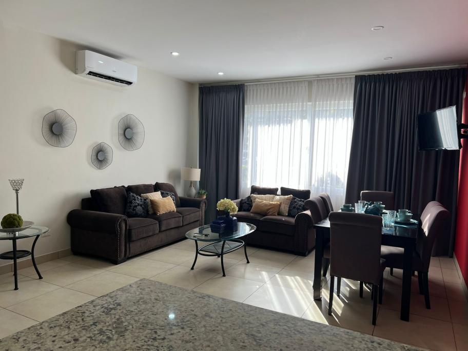 Se alquila bello Apartamento en Gemelli - Apartamento A 102 •1 parqueo •2 habitaciones con closet •1 baño •Full Cocina sala comedor amueblado •Área lavandería •Área social piscina •Seguridad 24/7 •Ascensor •Planta eléctrica para áreas comunes •Mantenimiento incluido y agua potable incluida seguridad 24/7 circuito cerrado - Precio $1000 mensual incluye cuota mantenimiento incluido agua potable cisterna 24/7 agua incluida seguridad 24/7 Energía eléctrica según consumo energía cada apartamento tiene su contador - No se permiten mascotas - Máximo 4 personas ocupando apartamento - Reglamento interno - Tarjeta acceso seguridad electrónica