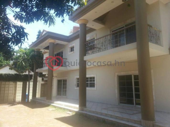2 cuadras del boulevar morazan, 1000 varas de terreno, 600 mts de construccion 5 habitación todas con baño y walking closet parqueo para 12 autos 4 bodegas. Area de barbacoa con kiosko y sanitario, sala star, sala familiar, comedor, medio bano para visitas, estudio, oratorio, cocina y alacena grandes con granito y caoba, toda la construcción de primer nivel piso de madera en gradas y habitacion principal, esta con jacuzzi y videt. Cisterna con 5000 galones agua caliente techo de madera viga vista. Habitacion de empleada amplia con su bano ( puede usarse para oficina) area de lavanderia, cascada, renta $3,000