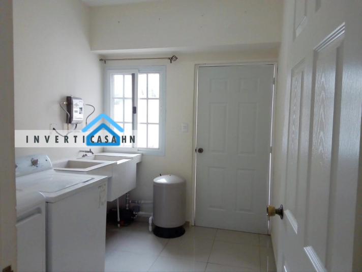 Se Alquila Casa en Residencial El Roble Oeste Tegucigalpa - Honduras. Ubicada a 5 minutos del aeropuerto, cerca de universidades, escuelas privadas y moles, fácil acceso al anillo periférico. Circuito cerrado y seguridad las 24 horas. Casa de 2 Niveles, consta de: - 3 Habitaciones cada una con su baño y 2 de ellas con terraza. - 3.5 Baños - 2 Salas - Comedor - Cocina con muebles y con instalación para lavadora de platos. - Cuarto de lavandería - Bodega - Garaje para 3 vehículos con portones - Área social techada - Área verde Cisterna y muros Precio: L. 19,000.