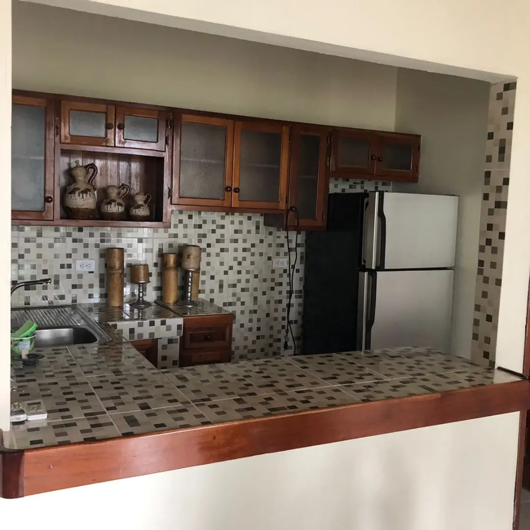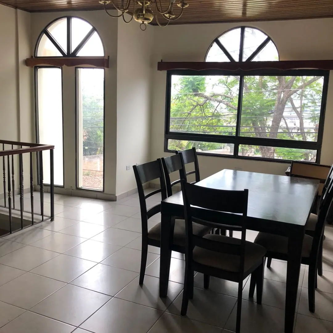 Apartamento amueblado de 1 habitación, 2 baños, sala, comedor,cocina, área de lavandería con pila y tendedero, garaje para 1 carro, portón eléctrico. No incluye lavadora y secadora.