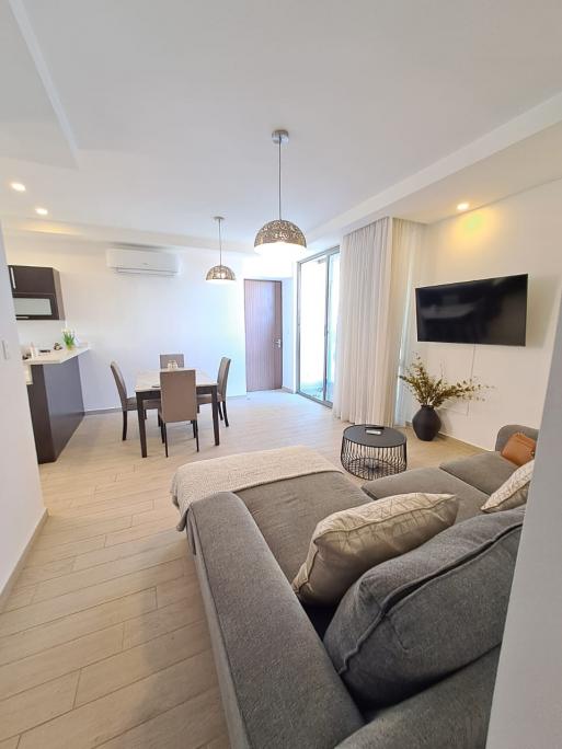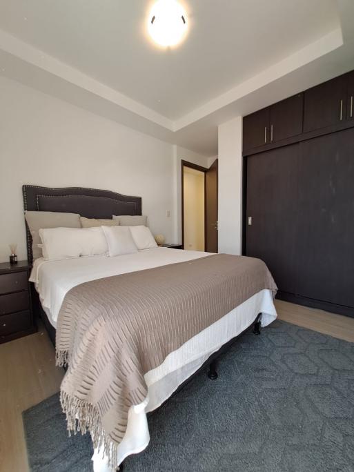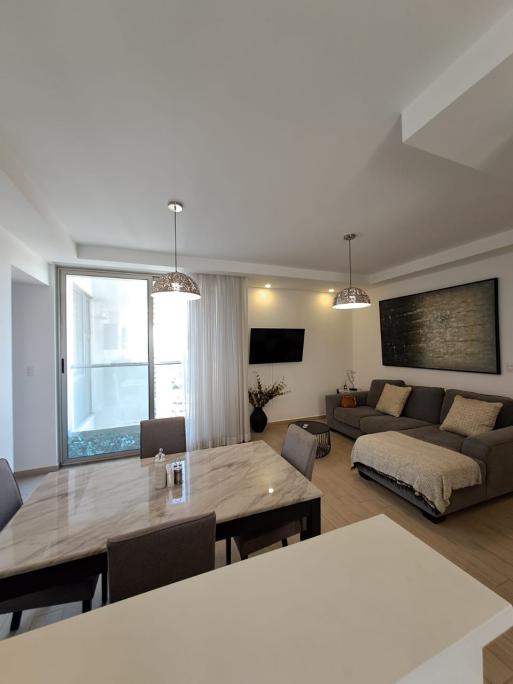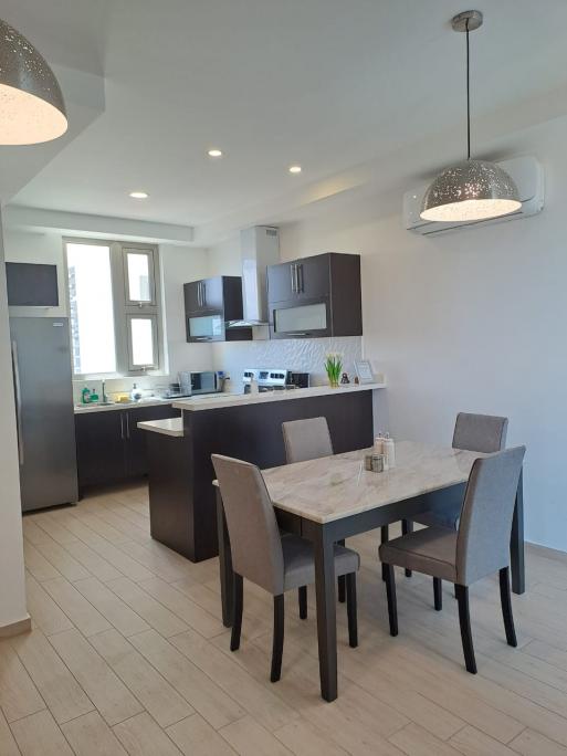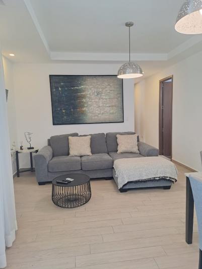 Se renta apartamento amueblado en Torre de 3 habitaciones, 2 baños, Walking closet en la principal, Sala, Comedor, Cocina con muebles, 2 parqueos. Incluye: Cuota de seguridad y mantenimiento, Full amueblada con línea blanca, estufa, refrigerador, lavadora, secadora, camas, cortinas, TV en habitaciones y sala. Etc. - Precio: $1,600 Incluye mantenimiento