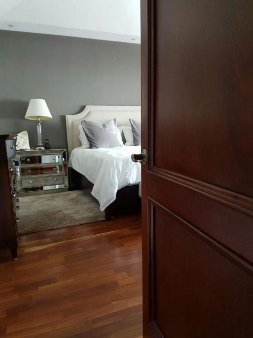 Casa de 3 niveles, todas las áreas climatizadas, 4 habitaciones con closet y baños, Sala, sala familiar, comedor, cocina, lavandería, estudio, servidumbre, 3 parqueos, área social amplia, bodega, porche, seguridad.