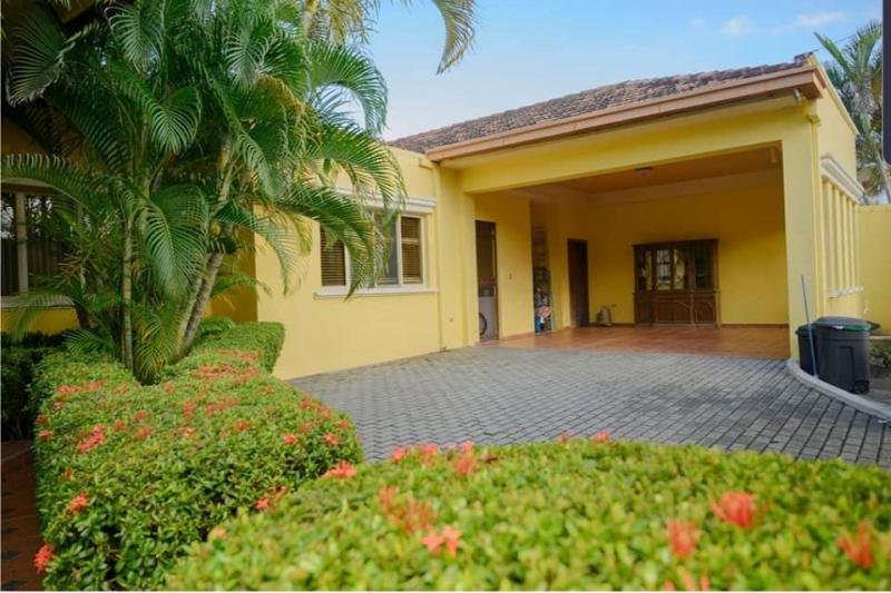 Consta de 4 habitaciones, 4 baños, 2 salas, comedor, cocina, estudio, terraza, amplia área verde, estacionamiento para 4 vehículos, cuarto de empleada, área de lavandería. 969.90 varas, 322.73 metros. Valor $ 320,000.00 Negociables