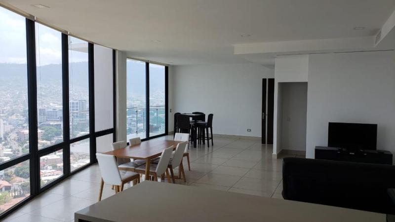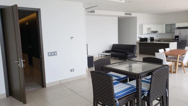 Oferta de Venta! Apartamento Totalmente Moderno, 3 Habitaciones con closet, 2 Baños completos, 1 Baño de visitas, Sala - comedor, Cocina con muebles e Isla con top de cuarzo, Lavanderia, 2 balcones con espectacular vista, Ventanales de Piso a Techo, Vista Panoramica desde sala, comedor cocina, y dormitorios, 2 estacionamientos Techado, Bodega de aproximadamente 5 m2, Incluye: Estufa, refrigeradora, lavadora, secadora de ropa, Incluye: 2 unidades de aire acondicionado central y mini splits en las habitaciones, Incluye cortinas en todo el apartamento.