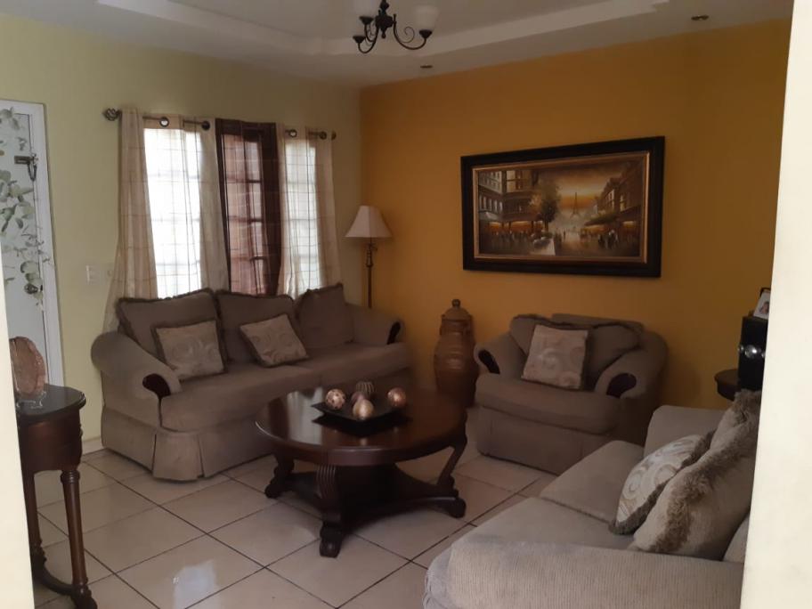 Consta de: estudio, 3 habitaciones cómodas, 2 baños y medio, sala, comedor y cocina con detalles de granito. Garage para 2 vehículos con portón eléctrico, área de lavandería con instalación de lavadora y secadora, patio, bodega, cuarto de empleada, instalación para A/C en todas las habitaciones y estudio. Circuito cerrado, seguridad privada y acceso al parque privado de la residencial. 200mts2