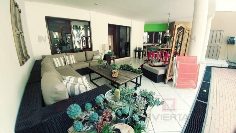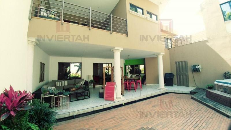 Amplia residencia muy buena ubicación. Residencial Loma Verde NIVEL INFERIOR; Garaje techado para 3 vehículos, portones eléctricos PRIMER NIVEL; Terraza frontal, recibidor, sala principal, comedor, sala familiar, terraza techada, área social con hidromasaje para 7 personas, cocina amueblada, con alacena, área de bar, área de lavandería, área de servidumbre, área verde- SEGUNDO NIVEL; Sala de estar con terraza techada, Dormitorio principal, con cuarto de baño, walk in closet y terraza frontal techada, Dormitorio 2, con baño privado y closet, Dormitorio 3 con baño privado y closet, estudio, área de jardín colindante. Valor $ 600,000.00 Área de construcción: 459.81 V2 Área de Terreno; 621.06