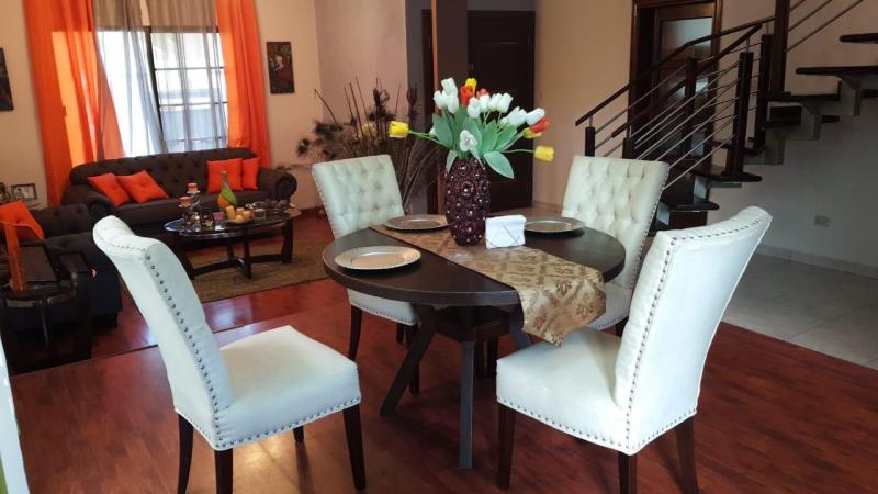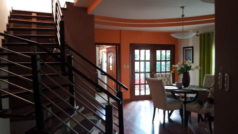 Cumple tu sueños viviendo en unas de las Residenciales más seguras de San Pedro Sula. . Garaje para 2 vehículos . Sala . Comedor . Baño visitas . Estudio (aire acondicionado) . Cocina . Área de lavandería . Habitación de servicio con baño privado . Agua caliente SEGUNDA PLANTA: . 3 habitaciones con baño privados (aire acondicionado) . Sala Familiar (aire acondicionado) . San Recibir . Área de Blancos . Bodega