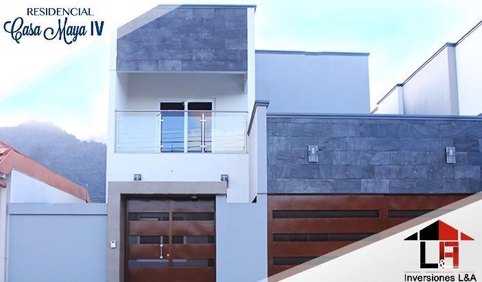 Se vende casa en Residencial Casa Maya 4. Cuenta con; garaje techado, mueble de cocina con top de granito en cocina, sistema de agua caliente, closet en todos los dormitorios, muro perimetral y portones corredizos, techo en aluzinc troquelado con insulación R11 fibra de vidrio, triturador de alimentos, calentador de agua, extractor de humo, top de mármol en mueble de baño, ventanas de aluminio, cerámica en balo de piso a cielo, intercomunicador / timbre, bañera en dormitorio principal, lavandería en pila y tanque elevado par almacenamiento de agua. Total 247 mts y Terreno 349.67 vrs2 Casa Nivel 1: 109 mts2 Casa Nivel 2: 102 mts2 Garaje 36 mts2 Precio: $ 200,000