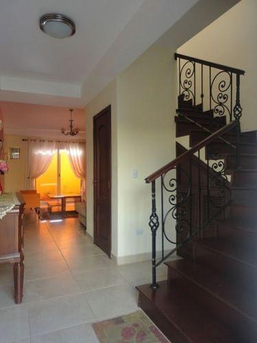 Casa en circuito cerrado ubicada en Residencial San Ignacio, Zona de alta Plusvalía 240 M2 de construcción principal y 9 M2 de balcones, 172.11 V2 de terreno distribuidos de la siguiente manera: 1) PRIMER NIVEL: Garaje techado para dos carros. Vestíbulo. Sala. Comedor. Baño de visitas, Terraza posterior, Cocina amueblada, Área de servicio con lavandería y dormitorio de servicio con baño completo. 2) SEGUNDO NIVEL: Sala familiar, Dormitorio principal con walk-in closet amueblado, baño completo línea de lujo y balcón, Dos (2) dormitorios secundarios cada uno con baño completo línea de lujo y walk-in closet amueblado, balcón en una de ellos. Además cuenta con instalaciones especiales en área de lavandería, cisterna con sistema hidroneumático y calentador. Cuenta con acabados de pisos de porcelanato, cerámica de baños, lámparas de lujo en toda la casa, gradas con enchape de madera, pasamanos y balcones de hierro forjado, cocina amueblada tipo modular de madera de cedro y cubiertas de mármol, detalles arquitectónicos y cielos de tabla yeso con detalles decorativos, ventanas y puertas corredizas del tipo alemanas; instalaciones para sistema de televisión por cable y teléfono. Adicionales: Portería de Seguridad las 24 horas y una línea telefónica, antigüedad de casa: 9 años.