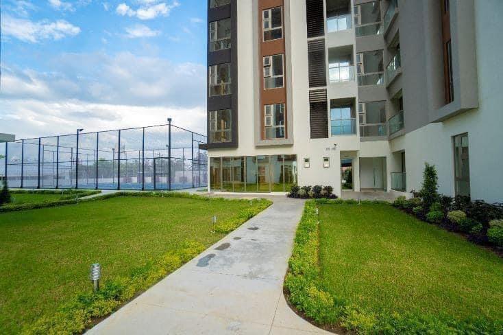 Mide 88.15 mts2, Consta de: 3 habitaciones, 2 baños, sala, comedor, cocina, area de lavanderia, climatizado. 1 estacionamiento. El complejo cuenta con: - Lobby - Piscina - Gimnasio - Area de barbacoa - Area para reuniones privadas - Area social - Sky walk - Sky Lounge - Área de juegos para niños Puedes comunicarte al