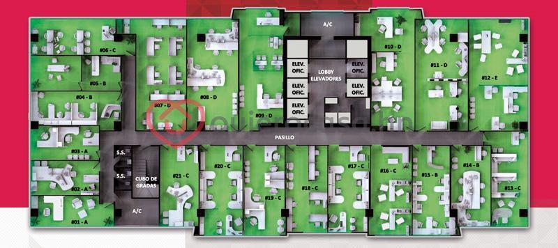 Moderno espacio de oficina en venta, ubicado dentro de una comunidad con todos los elementos de comodidad, función y seguridad para realizar diversos tipos de actividades comerciales y de negocios. Precio pisos : $63,900 precio pisos : $64,900 precio pisos : $65,900 precio piso 18: $66,900 niveles - 28 niveles totales: - 7 niveles de estacionamiento - 2 niveles comerciales - 12 niveles de oficinas en 2 torres con una huella de más de 1,000 m cada una. Locales comerciales espacios comerciales disponibles para diferentes necesidades en un área de más de 3,000 m. Contará con dos niveles para uso comercial con una plaza pública arborizada de más de 2,000 m. - incluirá un food court para 400 personas - tiendas - servicios de mensajería - otros negocios con servicios afines a las necesidades del complejo. Espacios flexibles soluciones de espacios de oficinas flexibles desde 25 m en adelante. Nuestro diseño se ajusta a sus necesidades individuales brindando áreas que permitirán satisfacer todas sus exigencias. Acabados de oficinas - cielos falsos acústicos - pisos de porcelana - recepción de doble altura con acabados especiales. Acabados externos: ventanales de vidrio flotado y aluminio. Las áreas cerradas de las fachadas serán repelladas, pulidas y pintadas internos: cielos falsos acústicos, pisos de porcelanato, recepción de doble altura con acabados especiales.