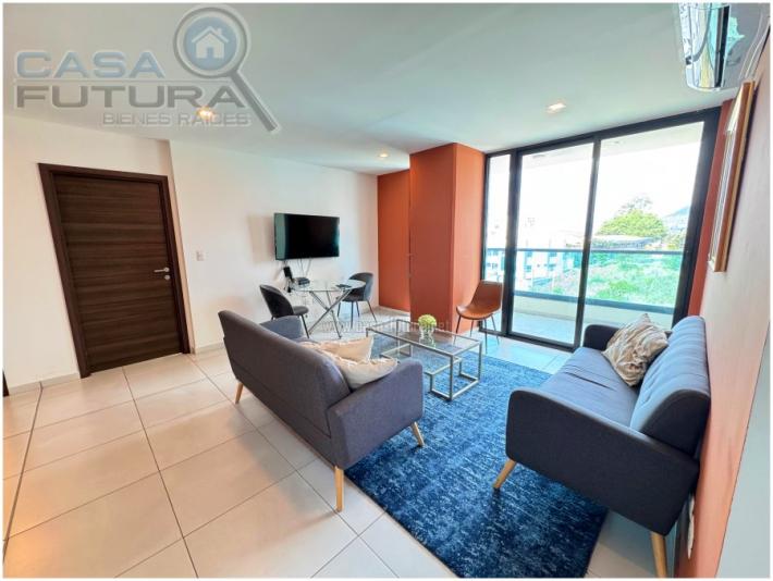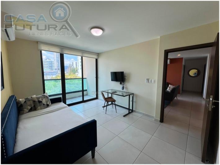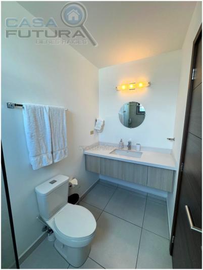DESCRIPCION APARTAMENTO AMUEBLADO • Area de construccion aproximada: 135.3 m2 • Habitaciones: 3 • Baños: 3.5 • Sala - comedor • Cocina con muebles • Closets • Estacionamientos: 2 • Aires acondicionados • Balcones: 3