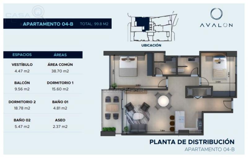 Avalon es el refugio y descanso en medio del ruido de la ciudad, es un oasis de paz que evoca serenidad. Su vista panorámica hacia la ciudad invita a ver más allá del día a día. Avalon es placidez y modernismo en sintonía con tus objetivos en una de las comunidades más seguras de Tegucigalpa. Sus vías de acceso permiten explorar las oportunidades que ofrece la mejor zona de la ciudad. Avalon es un espacio de confort, diseñado con mucha atención a los pequeños detalles para que sus residentes gocen de un ambiente hogareño y placentero. Sus exclusivos apartamentos tienen hasta 3 habitaciones y sus residentes cuentan dentro de este complejo con una gama de amenidades que complementan el nivel de bienestar que se merecen. Avalon esta ubicado dentro de un circuito cerrado en la Colonia Loma Linda Norte, la cual se considera una de las mas exclusivas residenciales de la ciudad y que la hace propicia para crear un hogar DESCRIPCION APARTAMENTO TIPO 4B • Área de construcción aproximada: 101 m2 • Habitaciones: 2 • Baños completos: 2 • Sala – comedor • Cocina con muebles • Balcón • Estacionamientos: 2 • Área de lavandería privada A menos de 8 minutos usted puede llegar a: • Un sinnúmero de restaurantes • Puntos de entretenimiento • Hoteles • Centros comerciales • Plazas comerciales • Escuelas privadas • 7 supermercados • 3 hospitales DATOS GENERALES DE TORRE AVALON: • Torres: 1 • Niveles de apartamentos: 10 • Sótanos para estacionamientos: 4 • Niveles de áreas comunes: 2 • Modelos de apartamentos: 6 • Desde 43 m2 hasta 133 m2 • Estacionamientos: 105 • Amenidades totalmente equipadas • Vigilancia 24/7 • Elevadores: 2 • Generador eléctrico de emergencia • Sistema de seguridad de circuito cerrado • Tiene aproximadamente 10,000 m2 de construcción entre residencias y áreas sociales AMENIDADES: • Rooftop pool • Gym • Bar & grill • Sala de juntas • Lobby con recepción y control de acceso • Área de juegos para niños DATOS ADICIONALES • Pisos contemporaneos SPC de alta gama tipo madera • Paredes divisorias de bloque de concreto entre apartamentos • Muebles de lavamanos flotantes y mamparas de ducha con vidrio templado • Muebles de cocina Italiana • Cielo Falso tabla yeso y spots empotrados • 10 Niveles (4 hasta 6 apartamentos por piso) • No se aceptan Airbnb. NOTAS: El precio varia segun la altura en la que se encuentra