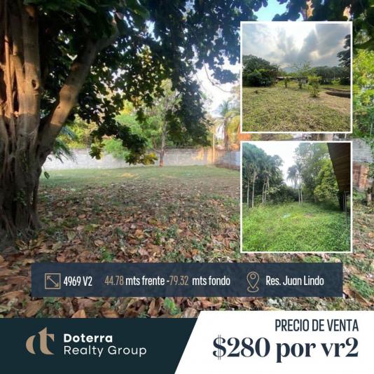 Oportunidad de Inversión en venta Terreno en Colonia Juan Lindo - 4,969 varas2 - 44.78 mts de frente - 79.32 mts de fondo. Precio x vara $280
